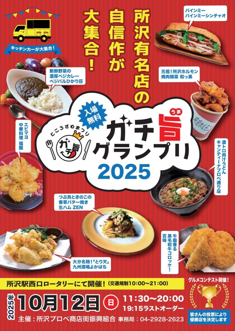 ガチ旨グランプリ2025|10月12日(日)所沢駅西口ロータリーで開催!所沢の人気グルメが大集合🍴